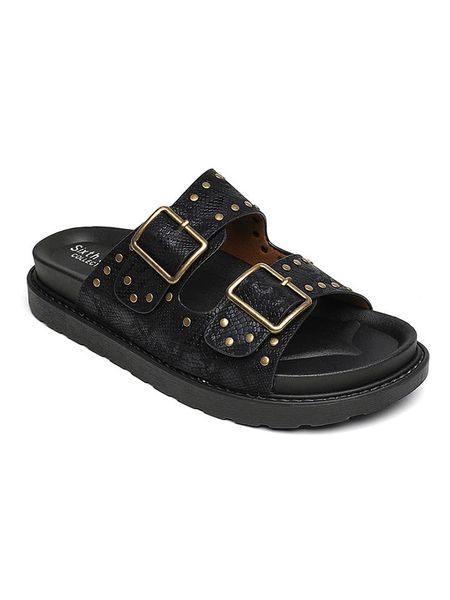 – zapięcie: sprzączka- noski: otwarte- powierzchnia: o fakturze skóry węża- detale: ozdobne nity- wkładka: ergonomicznie formowana- podeszwa: antypoślizgowa