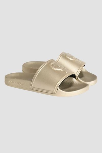 KARL LAGERFELD Złote klapki damskie KONDO 2.0 Karl NFT Relief, Rozmiar 40