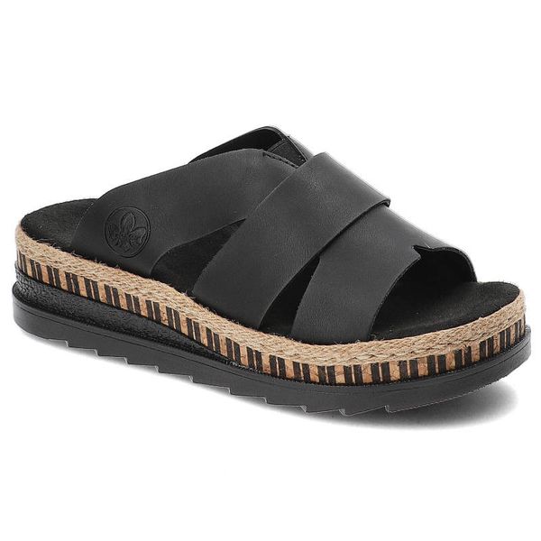 Czarne Klapki Rieker Wygodne Buty Na Platformie