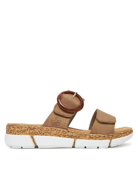 klapki na średnim obcasie brązowe klapki klapki bez obcasa obuwie damskie modivo.pl obuwie damskie rieker klapki ze sklepu modivo.pl klapki rieker