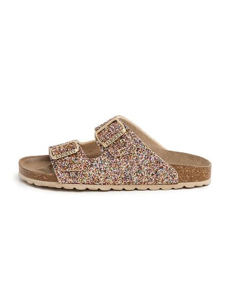 – zapięcie: sprzączka- noski: otwarte- detale: połyskujące elementy- wkładka: ergonomicznie formowana- podeszwa: antypoślizgowa