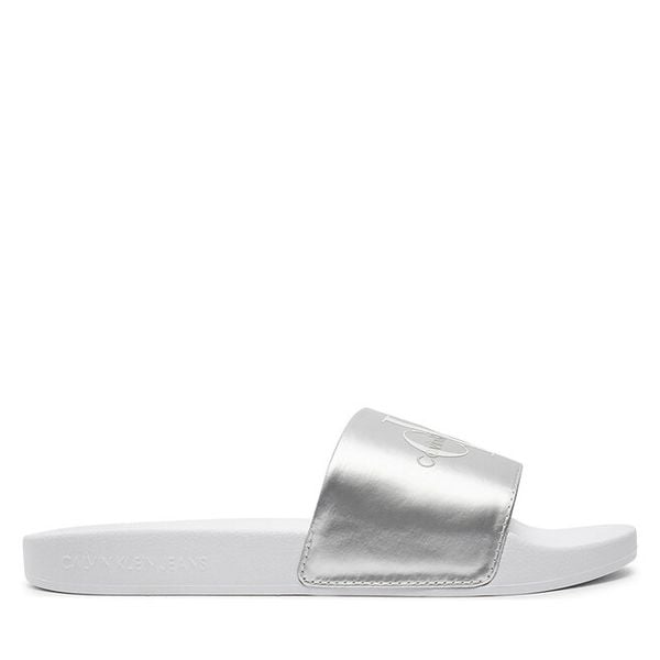 Klapki Calvin Klein Jeans Slide Ny Pearl YW0YW01243 Srebrny