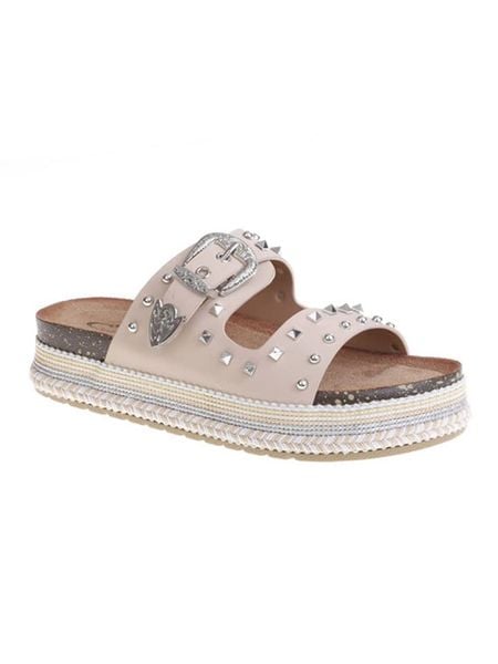 – zapięcie: sprzączka- noski: otwarte- detale: ozdobne nity- forma obcasa: platforma- podeszwa: antypoślizgowa