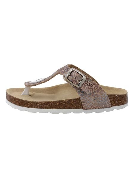 – skórzana wkładka: ergonomicznie formowana- powierzchnia: z metalicznym połyskiem- zapięcie: sprzączka- noski: otwarte- podeszwa: antypoślizgowa