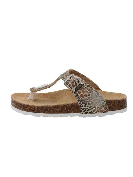 – skórzana wkładka: ergonomicznie formowana- powierzchnia: z metalicznym połyskiem- zapięcie: sprzączka- noski: otwarte- podeszwa: antypoślizgowa