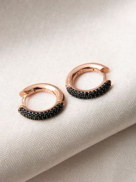– materiał: srebro Sterling próby 925- powłoka: w kolorze różowego złota- zapięcie: patka- rodzaj kamienia: cyrkonia- kolor kamienia: czarnyWskazówka: Zdjęcie produktu w powiększeniu.