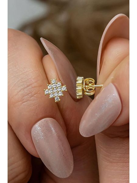 – materiał: srebro Sterling próby 925- powłoka: złoto- zapięcie: motylkowe- rodzaj kamienia: cyrkonia- kolor kamienia: bezbarwnyWskazówka: Zdjęcie produktu w powiększeniu.