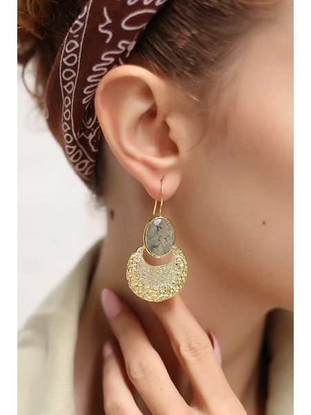 – materiał: mosiądz- powłoka: złoto- zapięcie: bigiel- rodzaj kamienia: prehnit- kolor kamienia: szaryWskazówka: Zdjęcie produktu w powiększeniu.