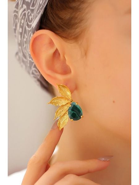 Pierres delicates Pozłacane kolczyki-wkrętki z malachitami rozmiar: onesize