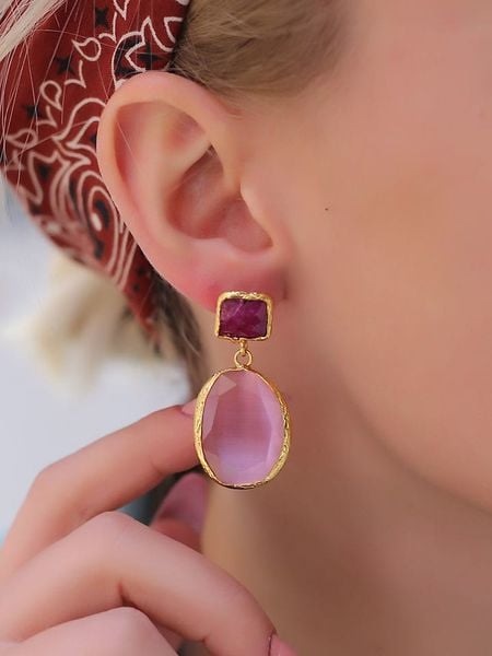 kolczyki z agatem kolczyki pozłacane kolczyki z mosiądzu kolczyki złote biżuteria damska limango.pl kolczyki ze sklepu limango.pl biżuteria damska pierres delicates różowe kolczyki kolczyki pierres delicates
