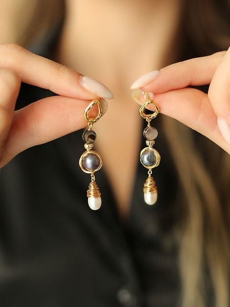 Pierres delicates Pozłacane kolczyki-wkrętki z perłami i masą perłową rozmiar: onesize