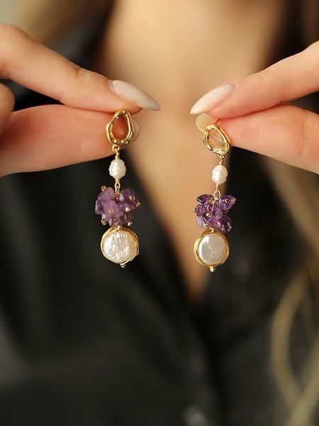 Pierres delicates Pozłacane kolczyki-wkrętki z perłami i ametystami rozmiar: onesize