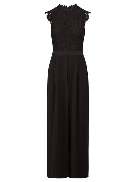– ramiączka: szerokie- kołnierz: stójka- zapięcie: suwak z tyłu- krój nogawek: Wide Leg- detale: kant, koronka- look: jednokolorowy