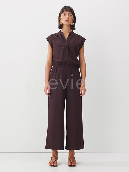 – dekolt: z rozcięciem- talia: elastyczna- kieszenie: wpuszczane- krój nogawek: Wide Leg- krój: luźny- look: jednokolorowy