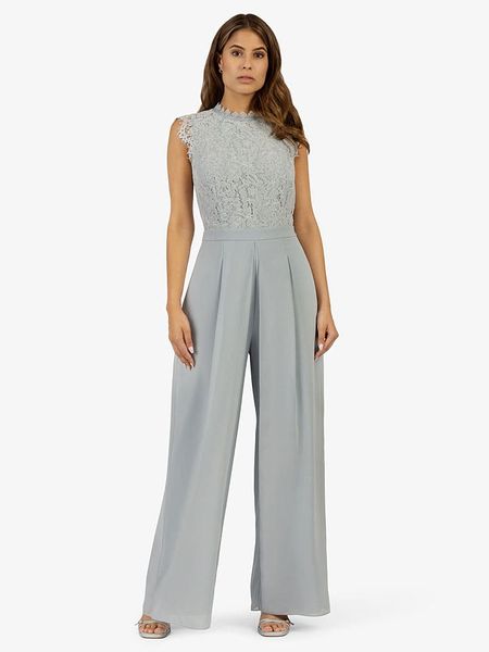 – ramiączka: szerokie- kołnierz: stójka- zapięcie: suwak z tyłu- krój nogawek: Wide Leg- detale: kant, koronka- krój: taliowany- look: jednokolorowy