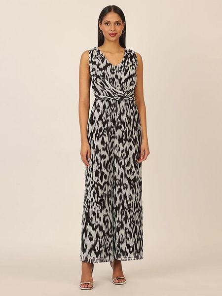 – ramiączka: szerokie- dekolt: V- zapięcie: suwak z tyłu- w talii wiązanie: tak- kieszenie: wpuszczane- krój nogawek: Wide Leg- krój: prosty- wzór: na całości
