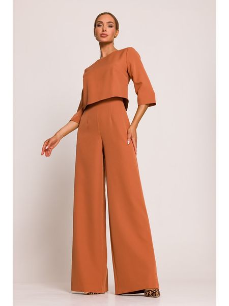 – dekolt: okrągły- zapięcie: suwak z tyłu- długość rękawa: półdługi- kieszenie: wpuszczane- zakończenia nogawek: dzwony- krój: prosty- look: jednokolorowy