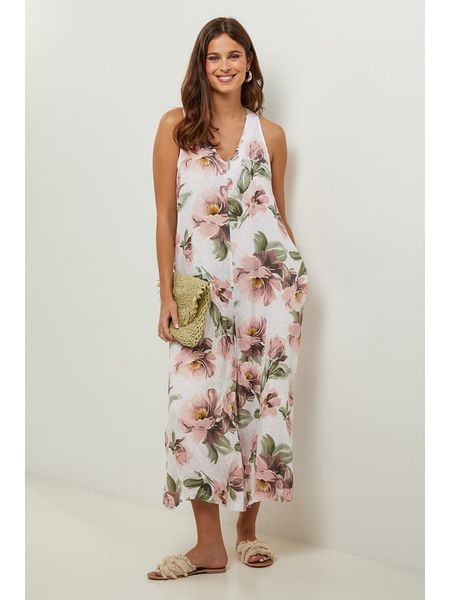 – czysty len- ramiączka: szerokie- dekolt: V- zapięcie: wiązanie na plecach- kieszenie: wpuszczane- długość nogawek: 3/4- krój: luźny- wzór: kwiatowyWskazówka: Na metkach odzieży tej marki znajdują się rozmiary francuskie. Rozmiarówka została przez nas przeliczona. Podane do wyboru warianty rozmiarów odpowiadają standardowym europejskim rozmiarom konfekcji. Prosimy zapoznać się z zamieszczonym objaśnieniem rozmiarów.
