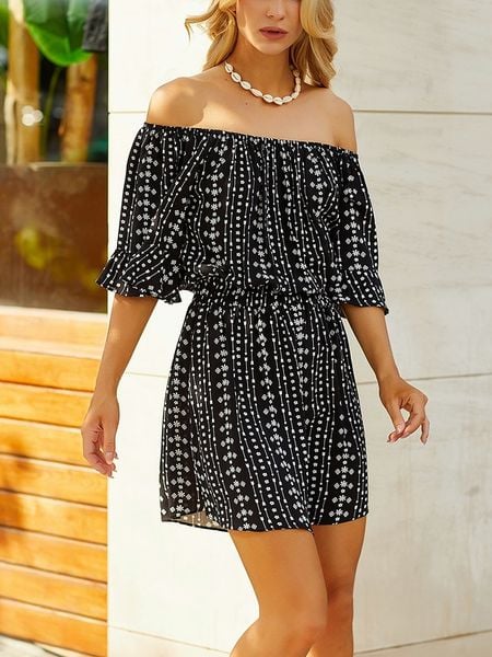 – czysta wiskoza- dekolt: Carmen- talia: elastyczna- kieszenie: wpuszczane- detale: falbany- krój: luźny- wzór: kropki