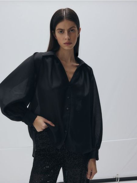 Koszula o swobodnym kroju wykonana z transparentnej tkaniny.