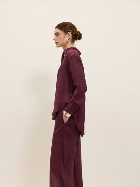 Oversizowa koszula z wiskozy – burgundowy