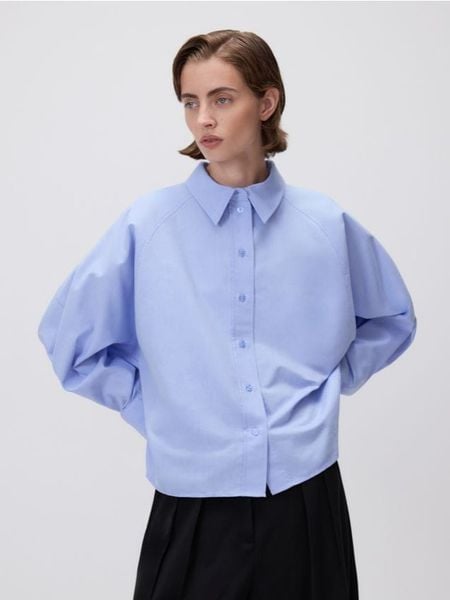 Koszula o skróconym kroju, uszyta z tkaniny z bawełną.