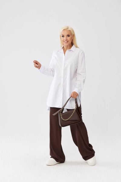 Klasyczna biała koszula Elena zapinana na guziki, asymetryczny krój PLUS SIZE XXL OVERSIZE JESIEŃ