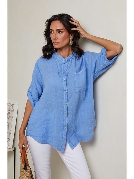 niebieskie koszule odzież damska limango.pl koszule le monde du lin koszule ze stójką koszule bez kołnierzyka koszule bez ramiączek koszule ze sklepu limango.pl odzież damska le monde du lin koszule bez rękawów