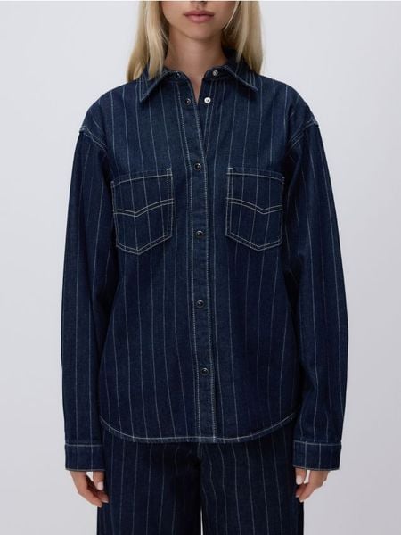 Koszula o swobodnym fasonie, wykonana z bawełnianej tkaniny.