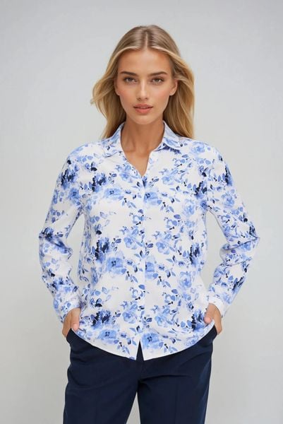 Wiskozowa koszula w kwiaty niebieska
