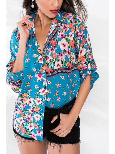 – kołnierz: kent- zapięcie: listwa guzikowa- krój: luźny- wzór: kwiatowy