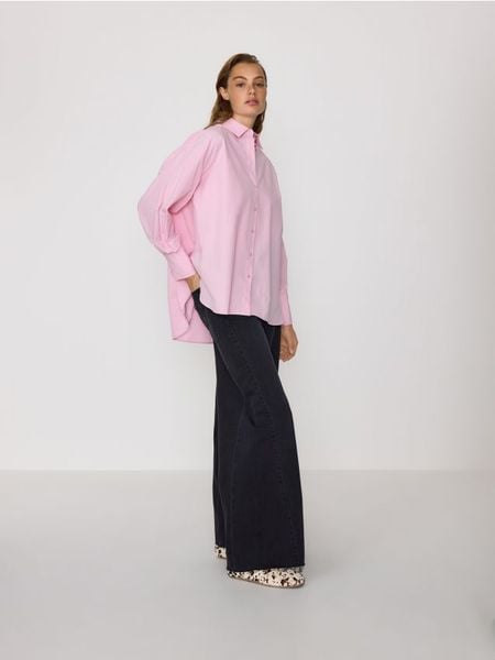 Koszula o swobodnym kroju, wykonana z bawełnianej tkaniny.
