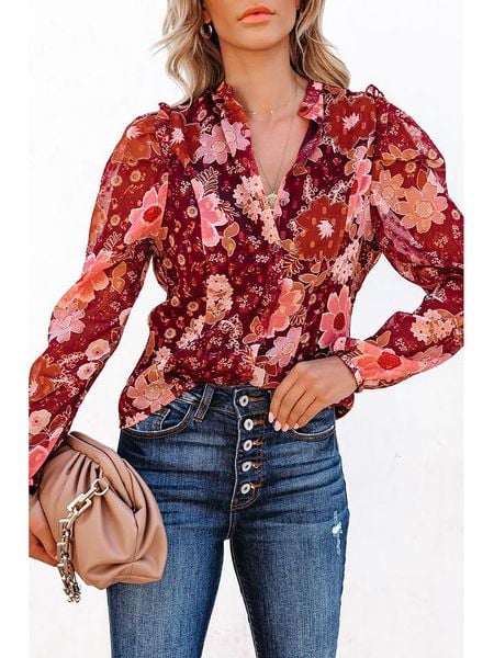– kołnierz: kent- zapięcie: listwa guzikowa- rękaw: bufiasty- krój: prosty- wzór: kwiatowyUwaga: Podczas wybierania odpowiedniego rozmiaru należy kierować się tabelą, widoczną na ostatnim zdjęciu.