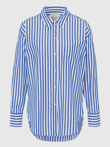 – kołnierz: kent- zapięcie: listwa guzikowa- kieszenie: na piersi- zakończenie rękawów: mankiet na guzik- dolny brzeg: zaokrąglony- krój: prosty- wzór: paski