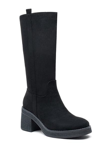 kozaki bez zapięcia obuwie damskie foreverfolie czarne kozaki kozaki bez obcasa kozaki foreverfolie kozaki na średnim obcasie obuwie damskie limango.pl kozaki ze sklepu limango.pl