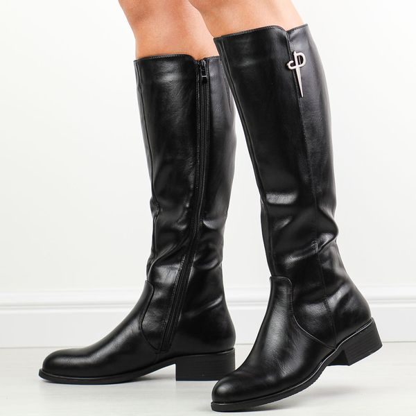Czarne pu płaskie kozaki damskie M.Daszyński 2458-4