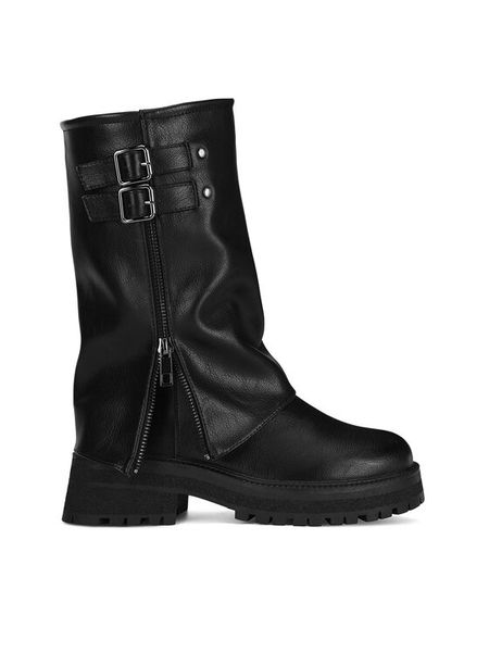 kozaki bez obcasa obuwie damskie jenny fairy kozaki na słupku kozaki jenny fairy czarne kozaki kozaki bez zapięcia kozaki ze sklepu modivo.pl obuwie damskie modivo.pl kozaki na średnim obcasie