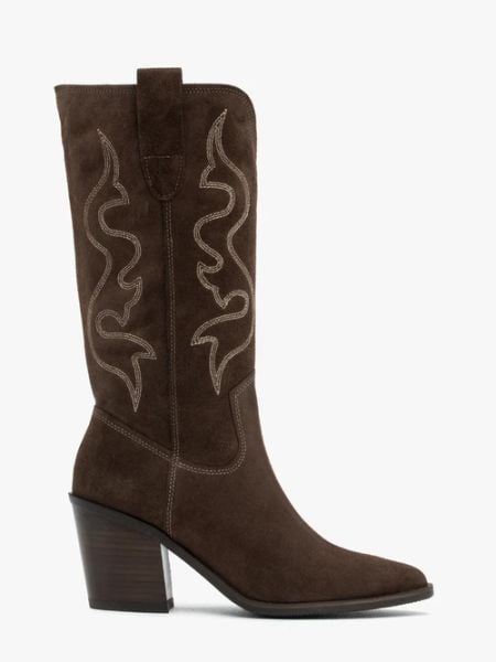 Wyjątkowe kozaki kowbojki damskie Ryłko w modnym, ciemnobrązowym odcieniu to propozycja dla kobiet, które kochają unikalne i przyciągające wzrok buty. Wykonane ze skóry welurowej, zdobione charakterystycznymi przeszyciami na cholewce, podkreślają styl inspirowany Dzikim Zachodem w nowoczesnym wydaniu. Obcas słupek 7,5 cm zapewnia stabilność, a nosek w szpic dodaje sylwetce smukłości i elegancji. Dzięki technologii R.SILENCE […]
