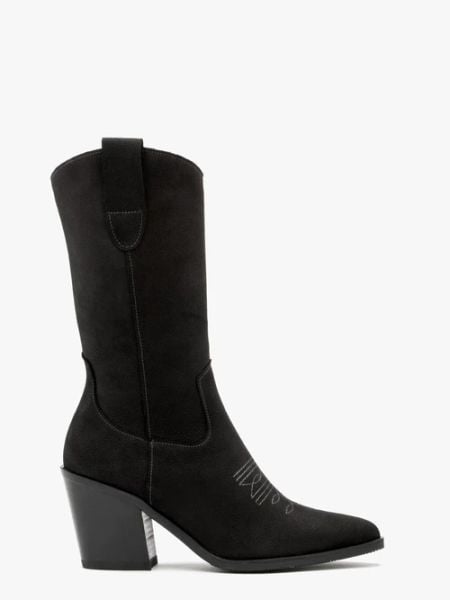 Czarne kozaki typu kowbojki z cholewką do połowy łydki