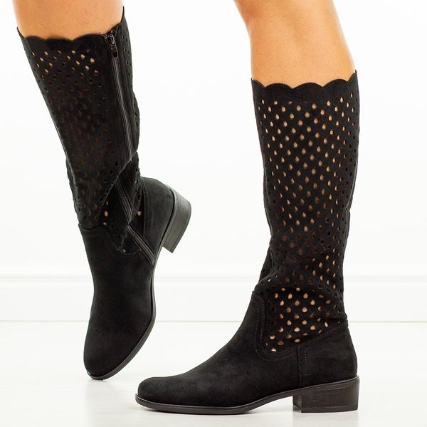 Czarne jesienne zamszowe kozaki damskie M.Daszyński Sa198-33b