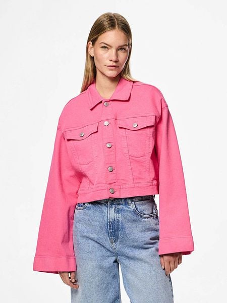 Pieces Kurtka dżinsowa „Vala” w kolorze różowym rozmiar: M