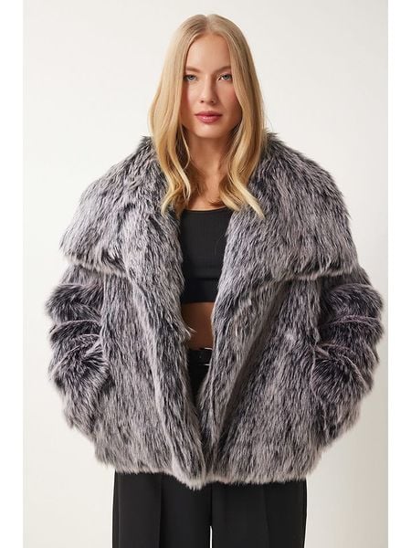 Happiness Istanbul Kurtka w kolorze szarym ze sztucznego futra rozmiar: onesize