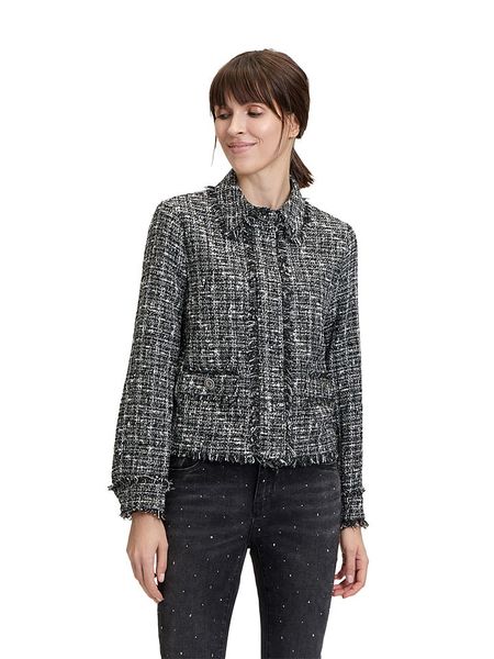 – kołnierz: kent- zapięcie: listwa guzikowa- naszyte kieszenie: 2- detale: aplikacje- krój: prosty- wzór: melanżowy