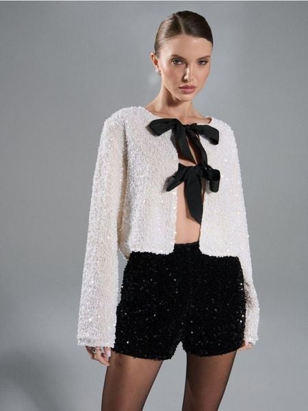 Sinsay – Żakiet z ozdobnymi wiązaniami – kremowy –