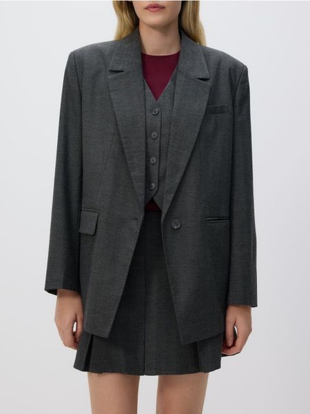 Marynarka o prostym kroju, wykonana z tkaniny z wiskozą.