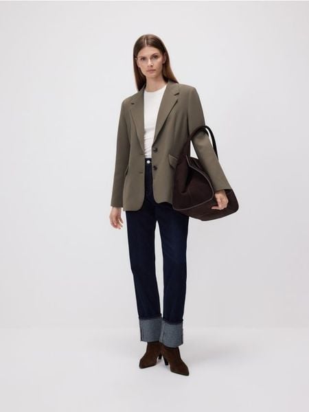 Marynarka o prostym kroju, wykonana z tkaniny z wiskozą.