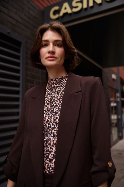Sukienka marynarka na lato bez rękawów asymetryczna żakietowa brązowa