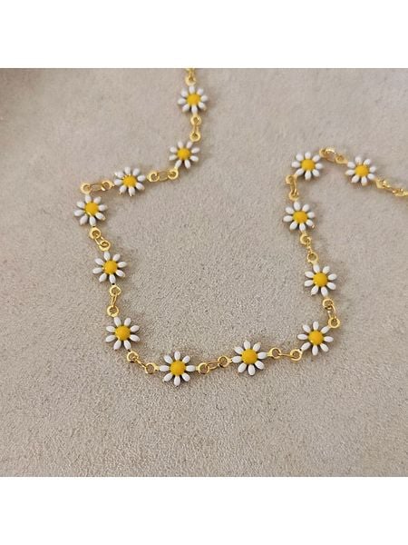 – materiał: mosiądz- powłoka: złoto- typ łańcuszka: ankier- zapięcie: karabińczyk- element ozdobny: kwiat- regulacja długości: takWskazówka: Zdjęcie produktu w powiększeniu.