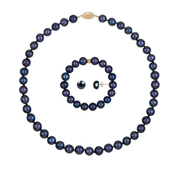 TAHA Komplet naszyjnik bransoletka kolczyki czarne perły naturalne 10 mm