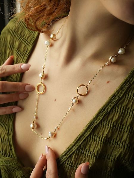 L’Atelier de Gaia Pozłacany naszyjnik z perłami – dł. 70 cm rozmiar: onesize